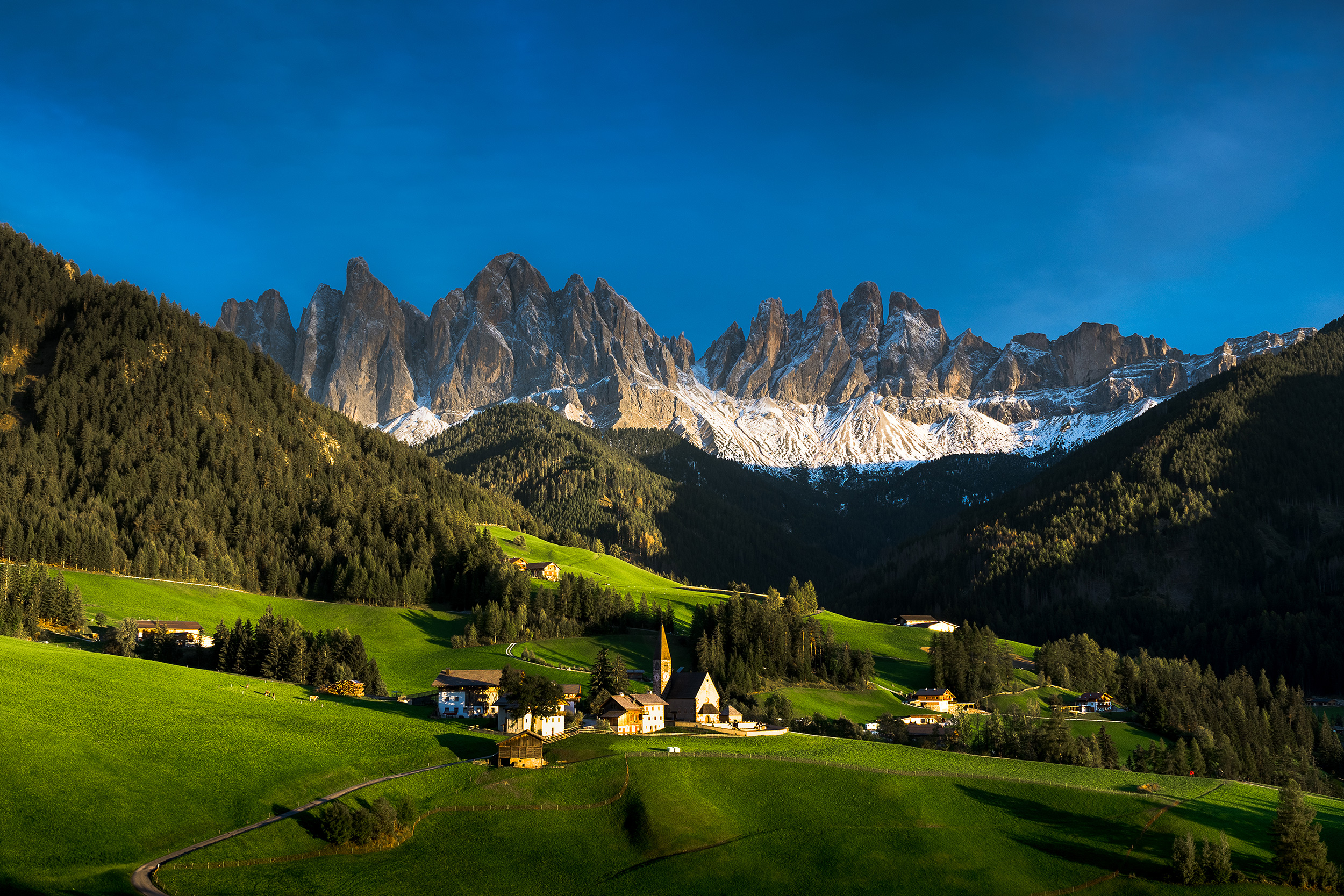 „Při fotografování krajiny však hraje prim počasí,“ pokračuje, „a během tohoto projektu se ukázalo, že ve dnech, kdy se zdálo, že počasí moc nepřeje, mohlo být vše během několika vteřin jinak. Přesně to se stalo v Santa Maddalena a Passo Gardena. V obou případech byla obloha šedivá a já jsem si říkal, že oblast alespoň prozkoumám a přijedu znovu. Ale fotografování krajiny je o čekání, což se následně potvrdilo. Jakmile slunce narazilo na díru v mracích, přišla odměna. Nevěděl jsem, jestli se třesu zimou, nebo vzrušením. Následujících 30 minut byly barvy neskutečné.“