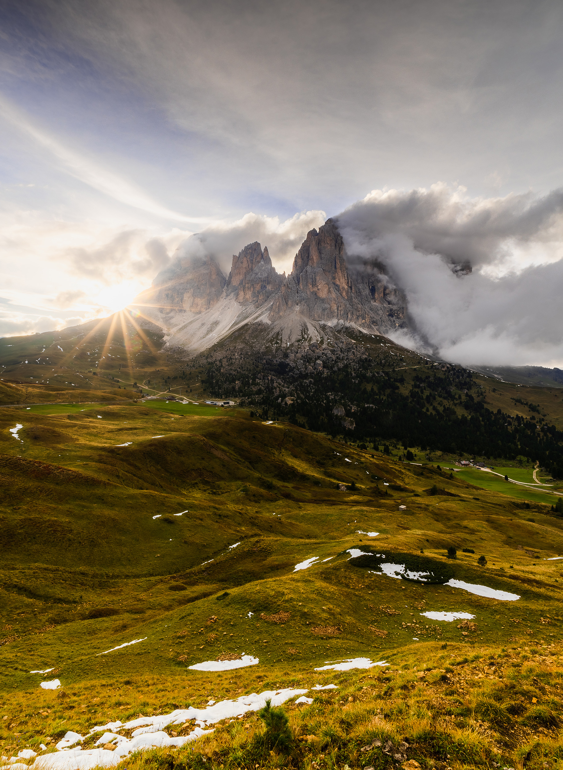 Aby Maciej zachytil světlo na Passo Gardena, musel se hodně snažit. „Slunce zalilo údolí dřív, než jsem dorazil na místo,“ vysvětluje, „takže jsem musel přidat do kroku a ve spěchu vystoupat asi 200 metrů. Musel jsem běžet do kopce s batohem, abych to stihl, ale stálo to za to.“